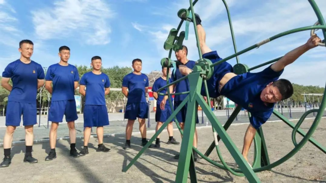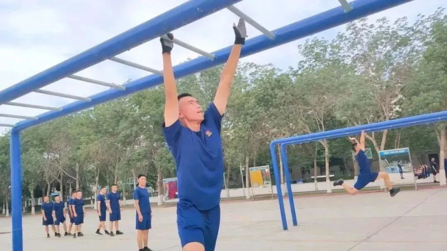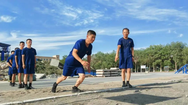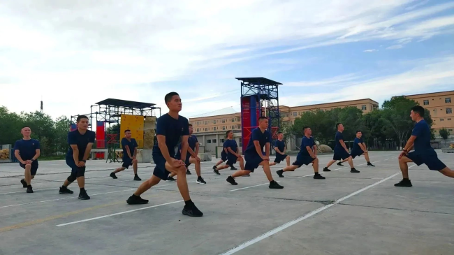 核心在于积累,不能一口吃成个“大胖子”。大队科学制定体能训练计划,合理搭配体能训练内容,充分利用沙地百米跑、俯卧撑、仰卧起坐、间歇跑、翻轮胎、单双杠等基础体能训练,有效激发身体潜能,并利用抗眩晕训练、爬绳爬杆等应用体能增强指战员的耐力与力量,促进队员基本素质全面发展。