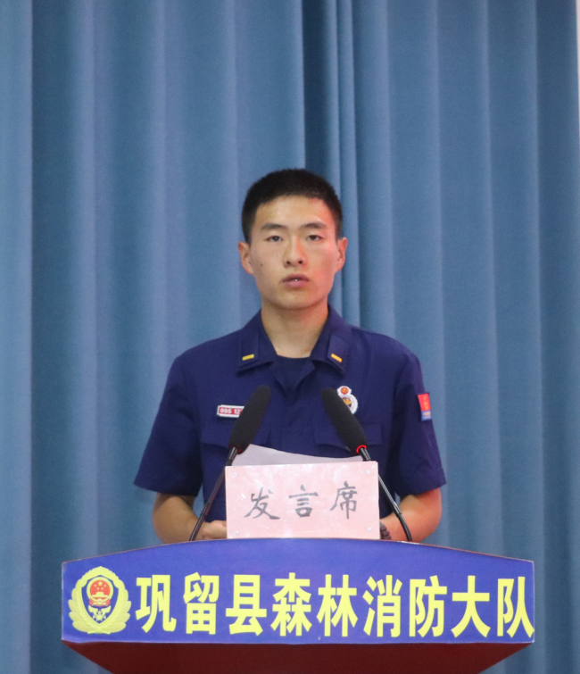 “以前在部队是总感觉保民平安离自己还有些许距离,当我来到这里后,深切感受到救民于水火,助民于危难是我们肩负的神圣使命,能够从事这份光荣的事业,我十分自豪,同时对自身能力存在的不足感到特别恐慌,就以什么样的姿态坚定投身改革,以什么样的业绩奋进新的时代,我认为要坚定信念,努力提升自身素质,学习技能知识,练就过硬救援本领,在关键时刻敢冲敢上,战之必胜,切实不辱党和人民赋予我们的神圣使命。”陆军某部退役后加入“火焰蓝”队伍的实习消防员韩庆表态发言。