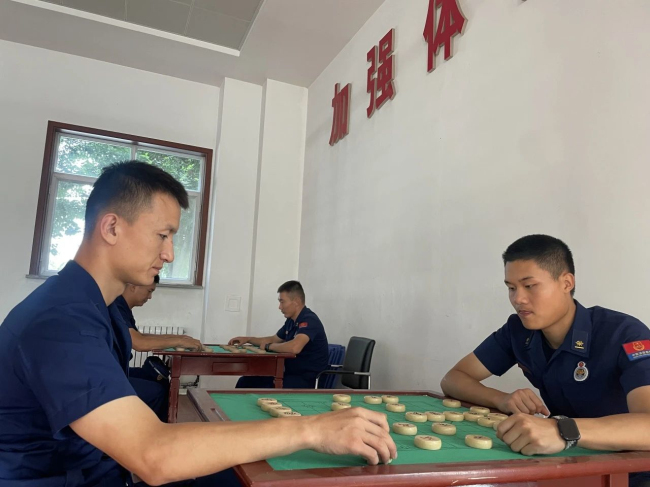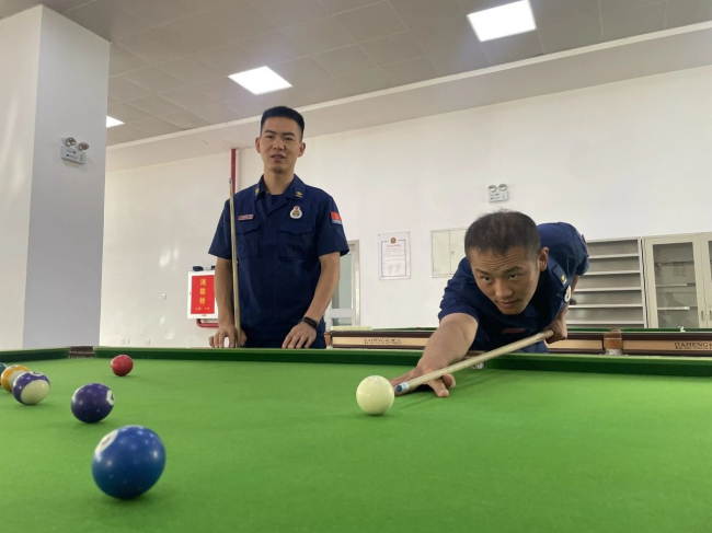大队坚持“形式多样、内容丰富,时间充足、全体指战员同乐”的原则,把文化活动同经常性工作融入一起,按照“场地用起来、活动搞起来、人员乐起来”的要求,充分利用现有条件,精心组织开展象棋、台球、打篮球、乒乓球等竞技性活动,激发指战员比拼精神。