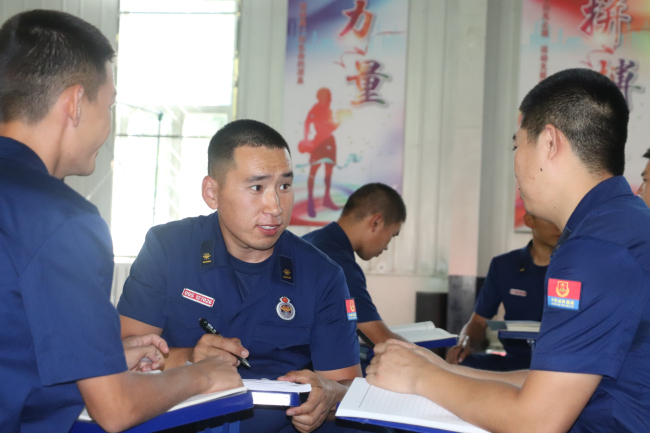 队长助理鲁绒其扎结合自己16年来的成长经历,教育引导新消防员要立足本职岗位,端正工作态度,刻苦训练,努力提高训练成绩,勤学好问,主动学习救援技术,磨练过硬本领,为早日成为一名合格消防员打下良好基础。