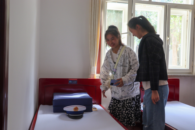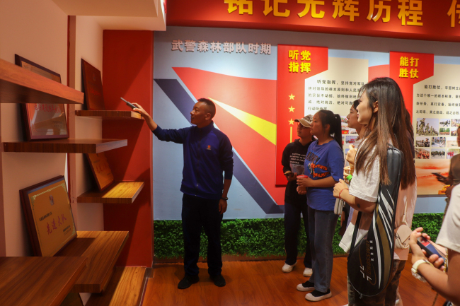 随后,引导员引领来队同学参观了班级宿舍,近距离了解了消防员日常生活,整洁有序的内务,“豆腐块”式的消防被,干净的卫生环境、有序的内务设置让学生们大开眼界,给同学们留下了深刻的印象,深刻感受到了队伍严明的纪律和严谨的作风。“大队组建以来,参加过很多次灭火作战、抢险救灾等救援任务,这里的每一张照片、奖牌和证书,都彰显着大队一茬茬指战员的辛苦和付出。”随着镜头的移动,引导员将同学们带领到了大队荣誉室,满墙的先进单位,传承队伍红色血脉的历史沿革以及真实的森林草原火灾扑救事迹,在讲解员生动的解说下,同学们时不时发出惊叹,在增强少年们森林草原火灾防范意识的同时,也给他们心底深处埋下了传承红色基因的种子。