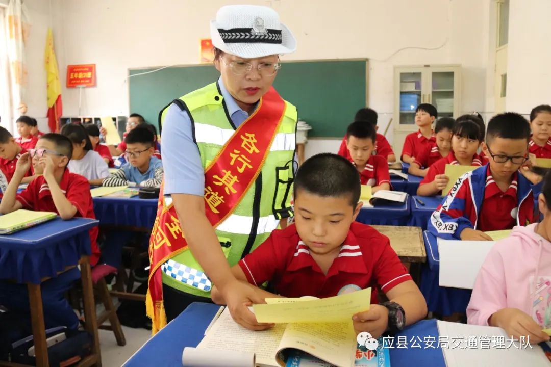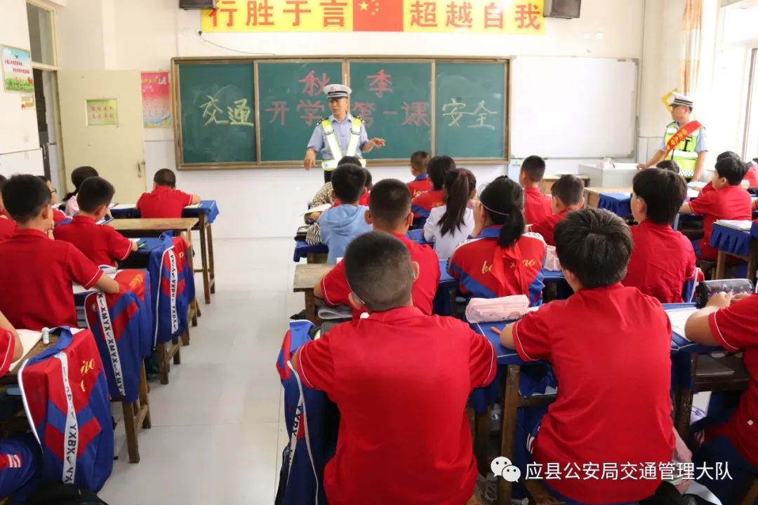 8月28日,是秋季开学第一天。为进一步提高中小学生和广大师生的交通安全意识,有效预防和减少中小学生道路交通事故的发生。应县公安局交通管理大队积极与辖区瑞华小学,借助“开学第一课”组织民警深入辖区学校,向广大师生开展交通安全宣传教育。