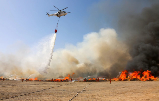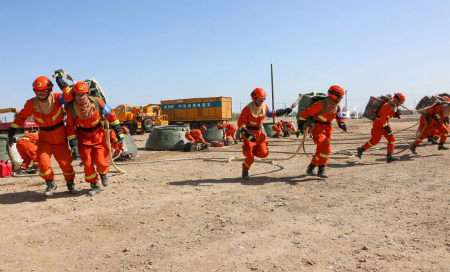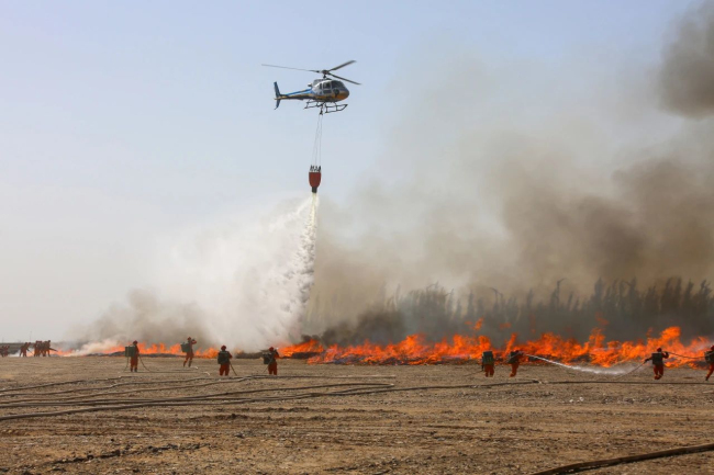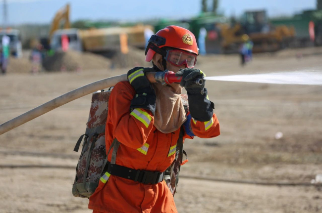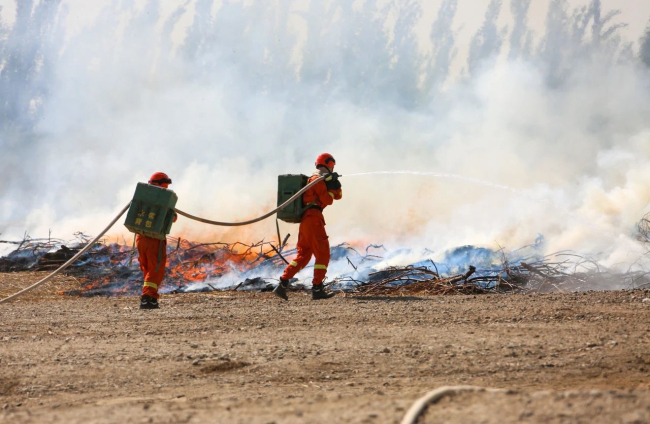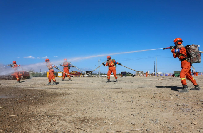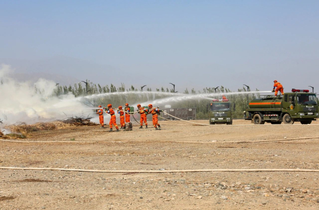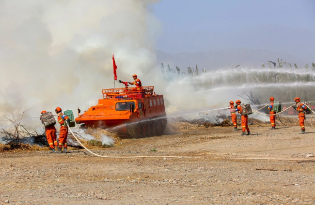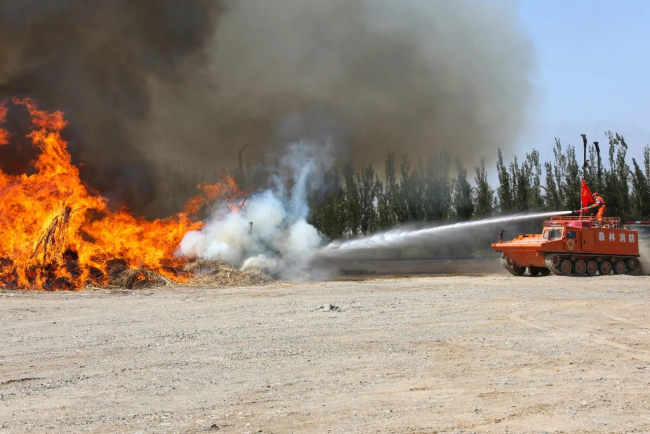 演练项目马上开始!随着30车约15万公斤柴草被点燃,熊熊大火迅速升腾。