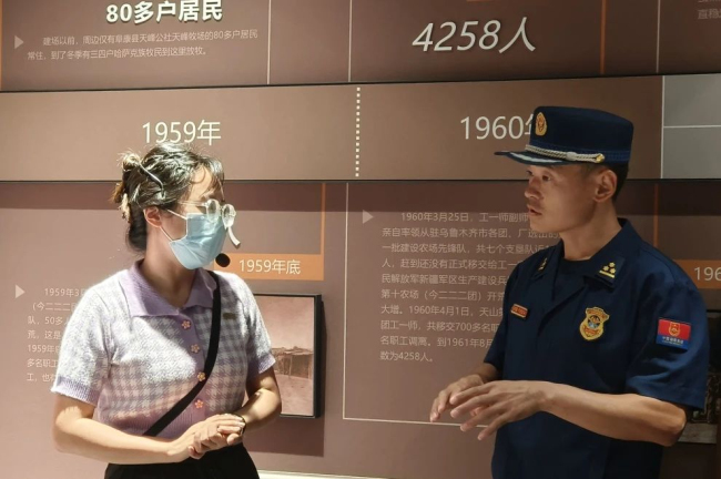 走进团文史馆,映入眼帘的是一幅镌刻了“老兵和知青挥舞着党旗迎面走来”的浮雕;讲解员用朴实无华的语言向大家讲解了上个世纪新疆生产建设兵团屯垦戍边时期的地窝子、打土块、挖排碱渠、修建冰湖水库、老机关等军垦遗迹。先辈们用实际行动诠释着“热爱祖国、无私奉献、艰苦创业、开拓进取”的兵团精神。