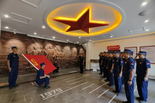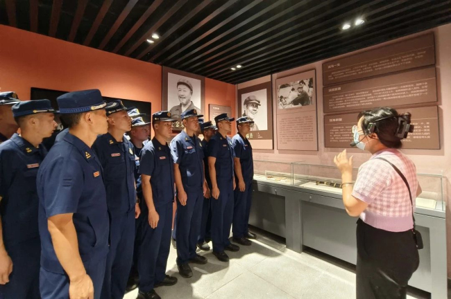 大家走一路、看一路、悟一路,无不为先辈们一心为国、投身革命的高尚境界而深深感动,精神世界和内心深处一次次被感染、一次次被洗礼。“我志愿加入中国共产党,拥护党的纲领,遵守党的章程......”,参观结束后,驻防分队组织重温入党誓词。面对鲜红的党旗,全体党员用铮铮誓言,铿锵有力的宣誓声,回顾入党时的初心,接受了灵魂的洗礼,思想的升华,体现党员对党的无限忠诚和浓厚的爱国热情,表达为党的事业奋斗终身的决心。