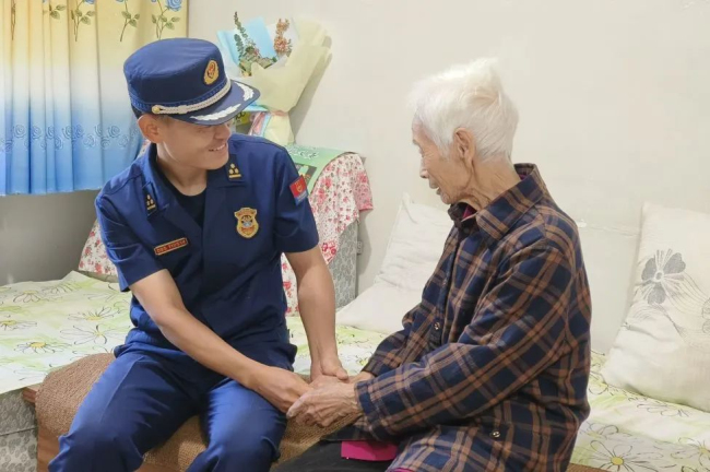 随后,指导员杜建茂仔细询问老人的身体情况及生活中存在的困难,并介绍了队伍改革转制以来的建设发展情况,“我们是一支准现役、准军事化的队伍,要学习就要学习老一辈革命军人英勇顽强、不畏牺牲、甘于奉献的精神,并且引导我们的指战员都要树立崇尚崇敬革命英雄的正确价值导向。”老人对指战员的到来感到十分很高兴,讲道:我希望你们要始终传承革命优良传统、永远听党话、跟党走、更好地为人民服务。
