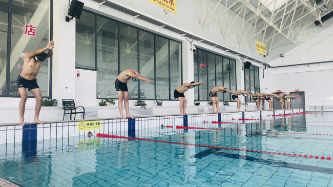 期间,分队根据参训人员的游泳能力和水平,合理划分小组,分层分级训练,快速提升专业能力,对水性较好队员侧重培养动作规范性,对水性一般的队员重点开展换气技术培训以及划水效率提高的专项训练,对水性较弱的队员则从熟悉水性、蛙泳肢体练习、蛙泳技术简单配合练习及短距离游泳等基础分步进行。同时结合水域救援实战任务,交流、传授水域救生和自我保护等重要动作要点,内容丰富、系统科学。训练期间,组织进行互相竞赛比拼,不断激发队员的训练热情。