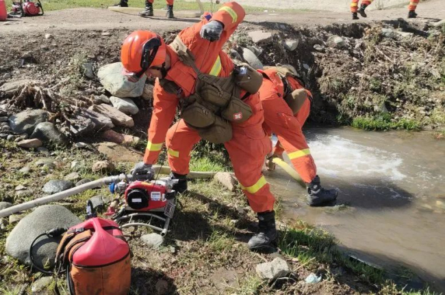 在曲折的道路上,身着一抹橙色的身影正在全力奔跑。水泵架设与撤收训练中,全体指战员精神饱满、分工明确、密切配合,架设过程有条不紊、水带铺设顺畅紧凑,整个过程快而不乱,程序规范,同时结合训练实际反复推演最快最高效的架设和撤收方法。通过一次次的总结、一次次的论证、一次次的优化,锤炼了队员快速高效实施灭火的能力和过硬的体能素质。