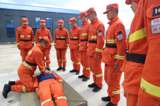 “心脏一旦骤停,4分钟之内开始心肺复苏,存活率为50%左右。错过最佳抢救时间,即使有幸生还,脑细胞也会不可逆性受损。因此心脏骤停后的心肺复苏必须在现场立即进行。”在心肺复苏训练中,教练员于慧鹏给大家讲解到。从评估现场环境、判断心肺复苏条件,到实施胸外按压标准、人工呼吸程度,教练员耐心讲解以及队员们精准的操作,无不体现出对生命的尊重。