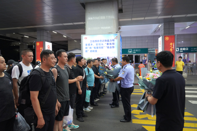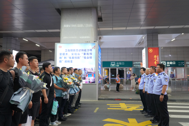本网讯:(田哲斌)9月16日19时许,尧都区公安局专案组跨省集中收网,先后抓获境外“回流”及部督、省督案件中涉诈犯罪嫌疑人17名并押解回临,区公安局领导班子在临汾西站迎接专案民警凯旋。