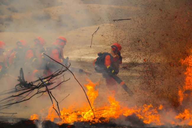 “爆破手,迅速在火场东侧打开突破口!随后一组沿火线向右翼进行扑打,二组沿火线左翼进行扑打。前方出现树冠火,水泵组迅速架设水泵向火场出击,对火头进行压制,常规分队跟进进行扑打清理!” 随着指挥员一声令下,指战员立即投入战斗,熟练运用“灭火常用战法,对火灾进行扑救,充分展示了国家队主力军的实战能力;同时与地方半专业扑火队协同配合,有序扑救,进一步提高了联合演练质效。整个演练过程紧张有序,队伍集结迅速,配合密切,确保在发生森林火灾后能以最快的速度、最短的时间、最有效的措施进行扑灭,达到“三无”,切实将森林火灾损失程度降到最低。