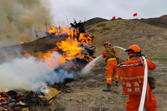本网讯:(陈文杰)为进一步做好驻地森林草原火灾预防工作,切实提升与驻地队伍应对森林火灾的协调配合能力。近日,新疆森林消防总队特勤大队天池驻防分队立足当前防火形势,联合阜康市林业和草原局、国有林管理局开展秋冬森林草原灭火应急联合实战演练,全面锤炼队伍应急处置能力。