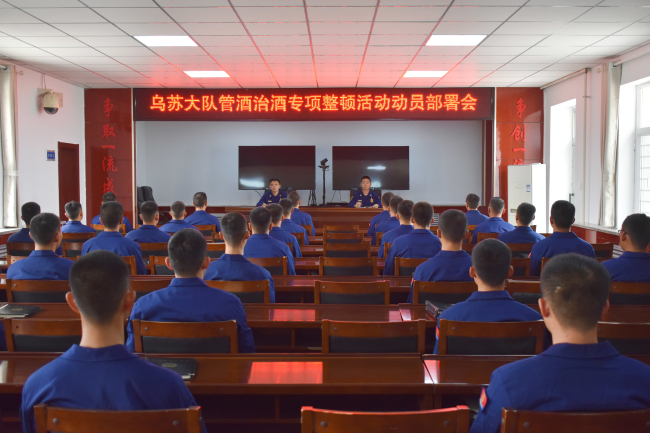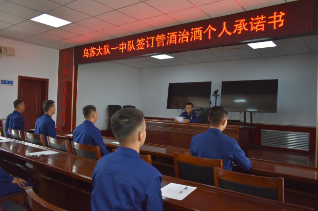 本网讯:(岳俊伟)为进一步抓好“管酒治酒”工作,严格队伍安全管理,坚决杜绝涉酒问题发生。根据大队计划安排,乌苏市森林消防大队扎实开展“管酒治酒”专项整治活动,有效推动管酒治酒工作落实落细。