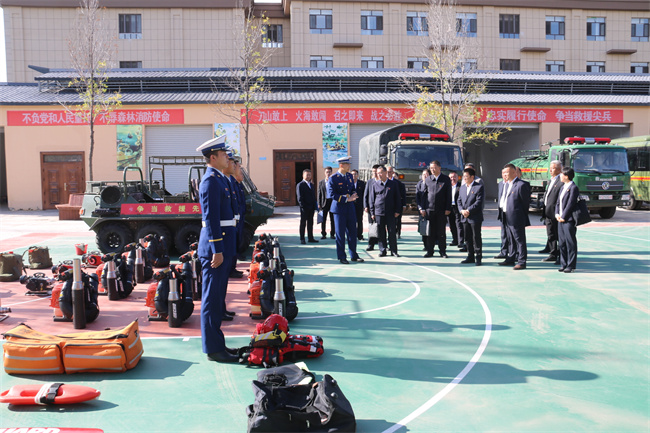 随后,新源国有林管理局的同志们实地参观了消防救援人员学习、生活和训练场所,现场观摩了灭火、山岳、水域等应急救援装备器材和消防车辆,听取了中队对党建工作、主题教育、执勤训练和队伍管理等方面的介绍,了解中队荣誉背后全体队员的默默付出,大家被队员们忠诚担当、竭诚为民的精神所打动,深切体会到了消防救援人员在守护人民群众生命财产安全时的无私奉献和辛勤付出。
