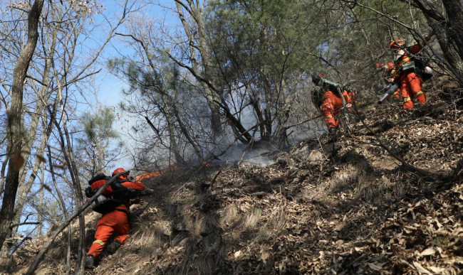 到达火场一线后,库尔勒大队二中队立即组织勘察火场,详细了解火场态势、地形地貌、植被气候及配属情况等要素。二中队第二梯队团员先锋队主动请缨进行增援。