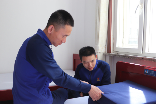 赵 航:内务,对于刚踏入队伍的我是个不小的挑战,床单、被子、毛巾,这些看似简单的物件儿却给我制造了不小的麻烦。床单要平的没有一丝褶皱,软绵绵的被子要叠的有棱有角,哪怕是毛巾都要掐出整齐的线来。这些在我看来不可能完成的事,却在班长手里迎刃而解,在他身上,我看到了“智”的影子,床单平的像“纸”,被子叠的像“豆腐块儿”,最令我惊奇的是,毛巾真的能掐出线来。我笨手笨脚地模仿着班长的样子,可离他的标准总是差那么一点儿。一看就会,一学就废,说的就是我吧。我满怀疑问去请教班长,他只说了这样一句话:多学,多问,多看。这短短的六个字让我感到意味深长。是啊,凡事都要多动脑子,要有双会观察的眼睛、一张虚心求教的嘴巴,以及日复一日的坚持。现在想想,拥有了这些,那些困扰我的难题,似乎就变得简单起来。