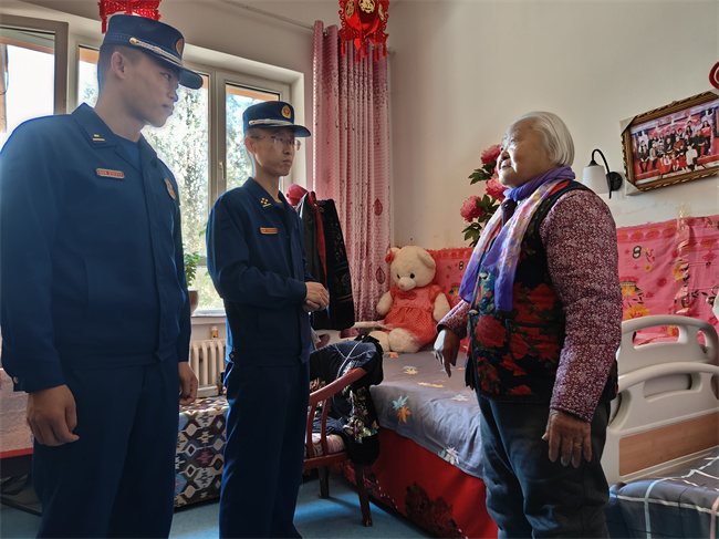 在房间内,大家热情的同老人拉拉家常,用最直接的方式给老人带去最真诚的温暖。“大叔,最近生活怎么样呀,有没有什么困难需要我们解决的?”刘杰教导员与老人们聊天时这样问到。“咱们现在生活好了,吃的好穿的暖,没有什么困难!咱们森林消防大队的消防员们逢年过节百忙之中都抽空来陪我们这些老头老太太说说话儿,还专门送来慰问品,心里真的是挺高兴的。”刘杰教导员详细询问了老人们的身体健康状况和生活情况,叮嘱他们要保重身体、互相照顾、鼓励他们保持积极乐观的生活态度。听着一句句亲切的问候,一声声关切的叮嘱,老人们脸上露出了和蔼的笑容,整个养老院里欢声笑语,其乐融融。