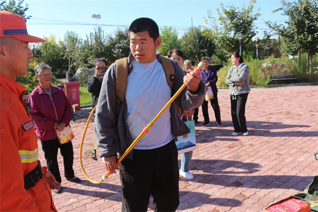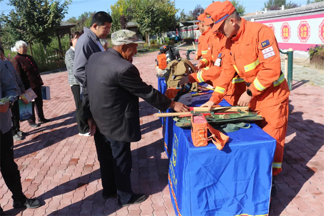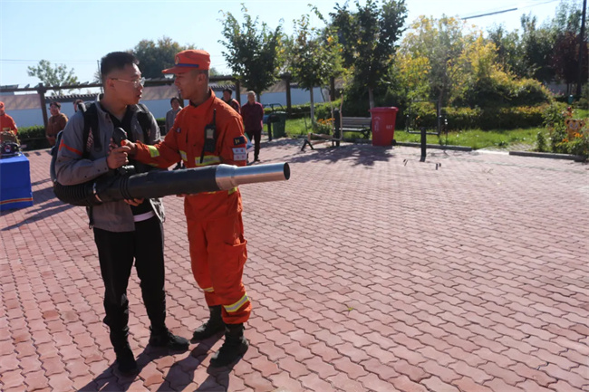 救援人员亮出主战灭火装备,吸引群众前来观看,并一一讲解灭火装备性能参数与使用方法,积极与群众互动,提高宣传趣味性。讲解演示结束后,救援人员为驻地百姓演示灭火装备操作与实用,让宣传教育变的更加立体。体验了风力灭火机的马先生对此深有感触:“只有亲自背起这些灭火的装备,我才深刻感受到森林消防员的不容易,更何况他们还要背着这些沉重的灭火装备翻山越岭。