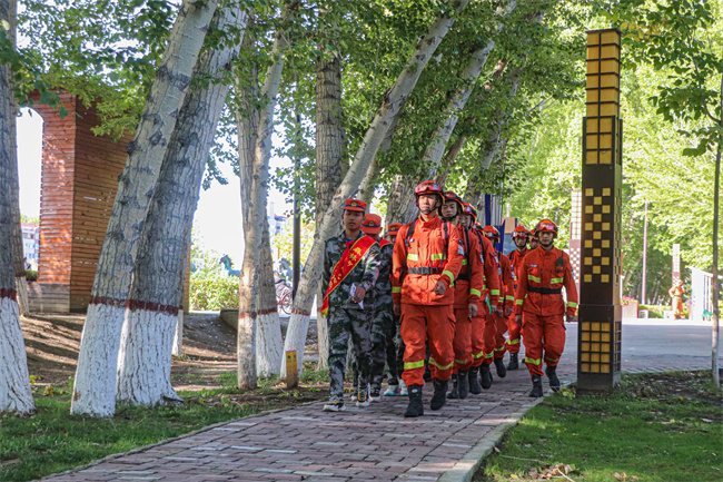 “早上多吃点,今天去山里巡护,要走好远呢。”队员们相互提醒到。吃过早饭,消防队员们开始整理装备,准备登车前往可可托海。