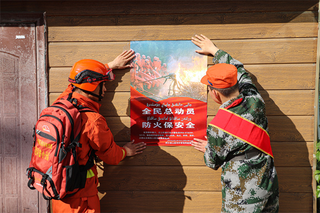 在科普宣教的同时,消防队员们还加强了对火源管控的力度。“同志,您好!进入林区之前请将您随身携带的打火机等火源进行上交,禁止一切野外用火,谢谢配合!”在景区收费站和进山入林的重要路口等地,执勤的消防员按照编组默默坚守,巡护在可可托海的密林深处,全力确保不发生任何火情。