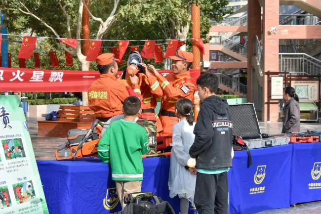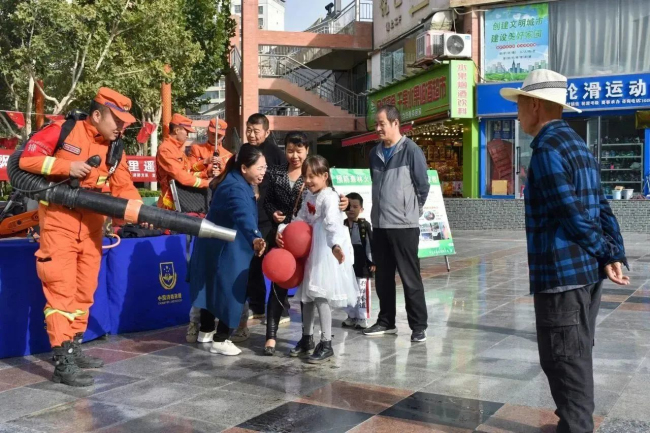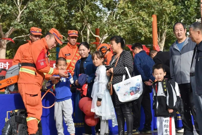 “您好,这是背负式风力灭火机,一方面可以扑灭明火,另一方面可以将火和树叶、杂草等可燃物分开,达到灭火的目的,这是我们森林消防队伍的主战装备之一。”四级消防士尹旭鹏热情地为群众介绍常用灭火机具性能和使用方法。