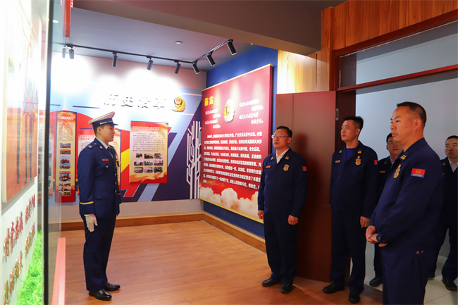 最后,就进一步抓好下步主题教育工作提出四点建议:一是持续抓好习近平新时代中国特色社会主义思想的理论武装,并贯穿主题教育始终;二是将调查研究走深走实,让难点堵点变成特点亮点,形成推动单位发展的有效成果;三是推动检视整改落地落实,做好前后衔接、上下贯通,整体推进问题解决;四是搞好总结评估,坚持服务中心大局、突出消防特色、紧跟改革进程、融入任务实践的思路,推进单位高质量发展。见面会结束后,工作组还参加了支队主题教育读书班交流体会活动。最后,在支队党委委员的陪同下参观了支队队史馆及营区建设情况。