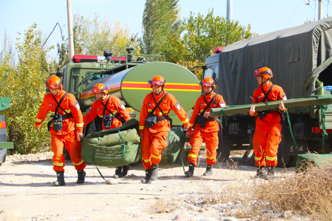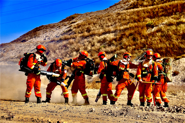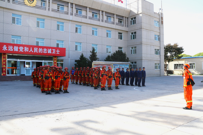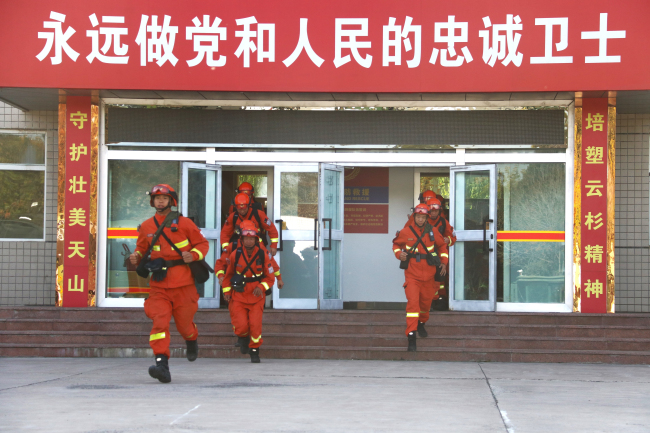 “同志们,接上级命令,10时20分,巩留县阿尕尔镇发生森林火灾,上级命令我大队出动55名指战员前往处置,下面按照大队一号预案立即展开行动!”伴随现场指挥员一声令下,全体人员按战备编成迅速装载装备物资,启动车辆、列队待命、准备登车,以雷霆之势做好前出准备。