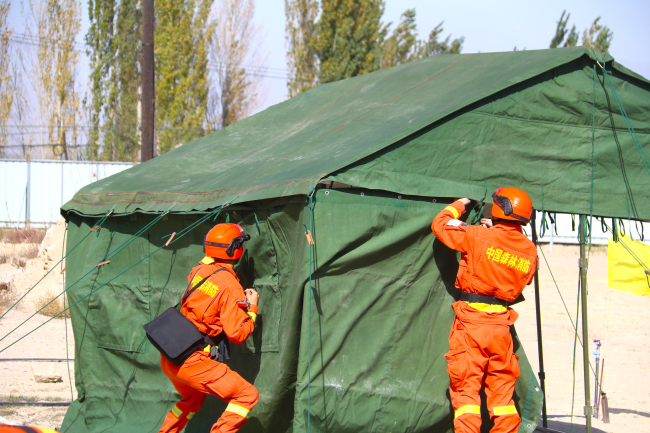 指挥员首先对宿营地周围进行实地勘察,对宿营地进行了合理规划,全体指战员各司其职、态度积极、精神昂扬,克服了大风天气带来的不利因素,充分发扬了不怕苦、不怕累的战斗精神,高效率、高标准完成了宿营区、车场、炊事区、就餐区开设。