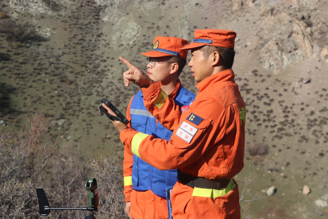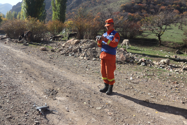 “我们现在所处的位置是伊勒格代杏鬃球蚧综合防控技术示范区,为高山林地地貌,植被类型以野山杏树、野苹果树、野山楂树、杨树为主,林下可燃物以草甸为主,夹杂着成片状分布的灌木丛,林区道路清晰可见……”管护区内,中队长孟庆闯带领着踏查小组,现地查看地形地貌,详细记录林区植被类型、植被含水率及林下可燃物载量,及时更新战备资料,掌握第一手有效数据。踏查小组结合无人机高空视角对林区道路、植被、水源及林情社情等要素进行详细记载,对重点火险区域可能诱发森林火灾隐患的种种条件进行详细分析,确保采集资料的准确性、系统性和全面性。