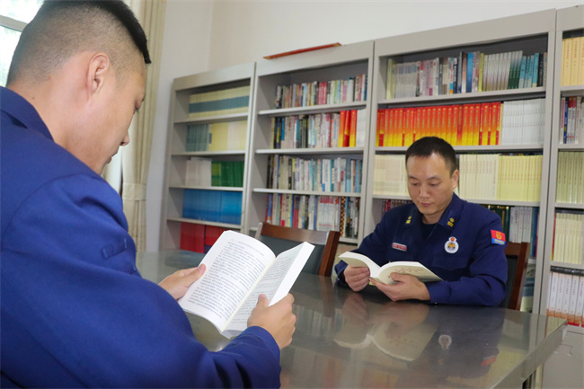 大队充分认识到理论学习的重要性、必要性,始终把理论学习贯穿主题教育,在真学原文、悟透原理上下功夫,采取党员干部带头学、集中领学、个人自学、讨论交流学等方式,真正把读原著、学原文、悟原理落到实处。确保达到从上到下学、一级一级抓的良好效果。同时,大队严密组织全体指战员搞好课后交流,在交流互动中进一步“帮消化、促吸收”,不断深化对习近平新时代中国特色社会主义思想的理解,不断提高理论素养。此外,充分利用饭前十分钟、点名前十分钟等小块时间,对所学内容“梳要点、背理论、促理解”,使主题教育更加深入人心,真正做到思想上把稳航向,精神上补足养分,确保主题教育有力推进。