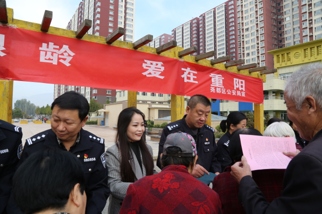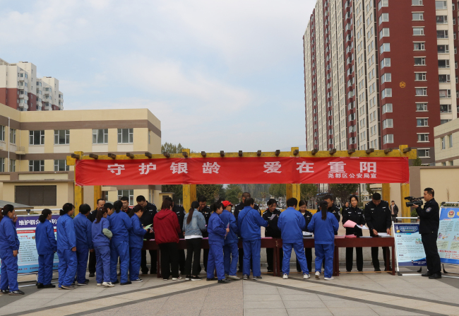本网讯:(田哲斌)为切实维护广大老年人合法权益,营造养老孝老敬老护老的良好社会氛围。按照省厅、市局统一安排部署,10月23日,尧都区公安局组织开展系列“守护银龄 爱在重阳”主题宣传日活动。