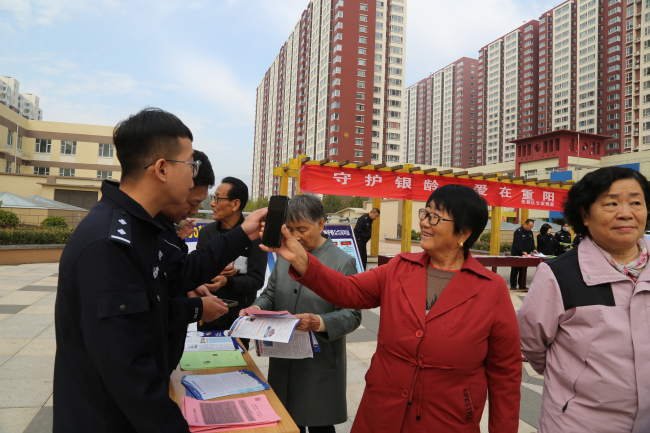 参加活动的民警、辅警以常见的养老诈骗、电信网络诈骗、非法集资诈骗、保健品诈骗及虐待、伤害老年人等犯罪为切入,走到老人身边,与老人们亲切交流,深刻揭露涉老违法犯罪的惯用“套路”手法,现场进行答疑解惑,提醒老年人提高法治观念,加强自我保护,看管好自己的“钱袋子”,守护好老年人的晚年幸福生活。