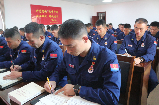 大队全体救援人员根据个人实际情况制定学习计划,紧密联系工作岗位实际,认真学思践悟,积极以知促行,通过三会一课、人人上讲台等多种形式深入学习主题教育学习书籍,充分利用微课堂、小讨论等多种学习手段,积极引导广大指战员深入思考、交流心得,营造良好的学习氛围,引领广大救援人员进一步统一思想、统一意志、统一行动,推动主题教育走深走实、落地见效。