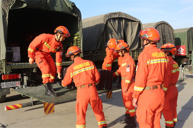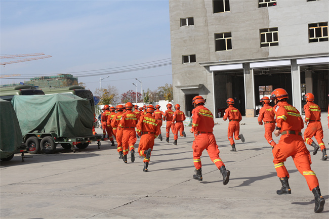 “接上级通知,乌苏市古尔图镇突发6.5级地震,建筑物倒塌、有人员被困,上级命令我大队赶赴地震灾区实施救援......”此次演练重点目标是加强落实战备制度,细化实化地震救援方案;组织针对性训练,持续做好“实战+演练”应急响应拉动演练;注重协同配合,加强与地震、应急、交通、卫健等相关部门的沟通协调;搞好综合保障,及时对装备器材、运输车辆、个人防护装备等进行全面细致检查维护,确保遇有任务能够迅速响应,快速行动。