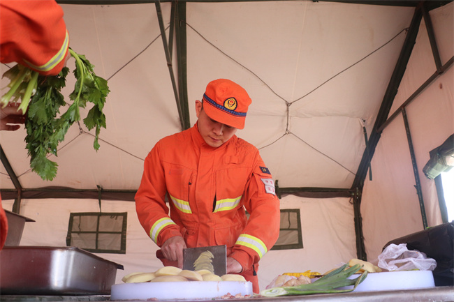 炊事员苏瑀杰说:“俗话说吃饱喝足才能干劲十足,队友们每天在训练场摸爬滚打,我们也要把伙食保障作为“实战”来研究,看到大家大快朵颐吃饭就是对我们最大的鼓励”。