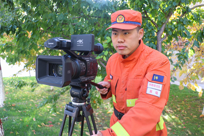 深夜,中队新闻报导员康冀在还在忙碌着。自担任新闻报导员以来,他每天的睡眠时间不足5小时。每逢节假日,他便跟着中队在驻地景区宣传,右手扛着摄像机、左手提着无人机、脖子上挂着照相机,在景区和林区来回奔波,只是为了几张好的视频照片素材。任务结束回到营区,饭菜随意吃两口,便又投入到工作当中。队友们都称他是“拼命三郎”,不理解他为什么对待新闻报道工作如此认真,他说到:“我只是想把队友们坚守岗位、辛勤工作的一瞬间展现给人民群众、展现给队友们的家人,更想让人民群众知道,万家团聚时,有我们守护着这份祥和。”