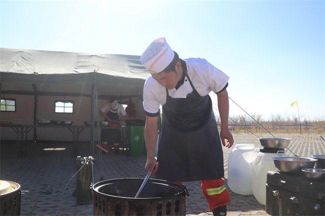 早上七点左右,当其他人还沉睡在梦乡之中,炊事员贾镜伟已经在准备早餐了。这是他入队的第四年,每次有重大节日,他是最忙的那一个人,队友们用手机和家人通电话,他用手机联系卖菜老板,预定第二天的食材;夜晚队友们已经进入梦乡,他在炊事班清理着食材,为第二天的三餐做好准备。“今天的饭菜口味怎么样?”每一次用餐结束后,他都会询问队友饭菜的口味如何,通过收集意见来改良自己的厨艺。队友们经常问他:“平时你就很忙,一到节假日你就更忙,你难道没有抱怨过吗?忙起来的时候没有时间和家里人打电话,不想家人吗?”起初,他被问到这个问题的时候都会愣一下,随着时间的推移,他会轻松幽默的说到:“想家是肯定的,但是我在队伍已经4年了,单位早已是我的第二个家,队友就是我的家人,为家人做上一顿丰盛的饭菜,再累也值”。