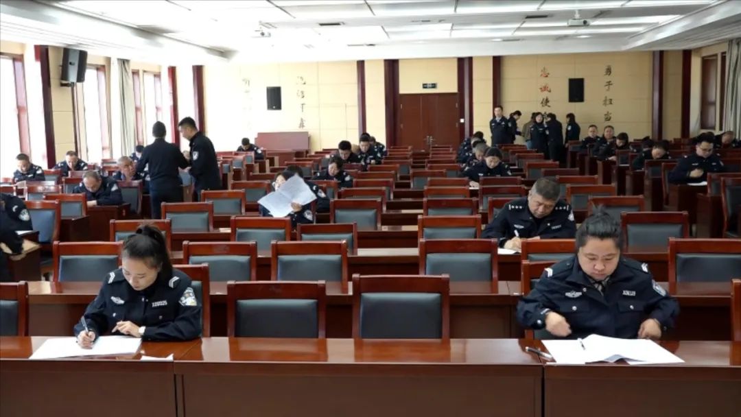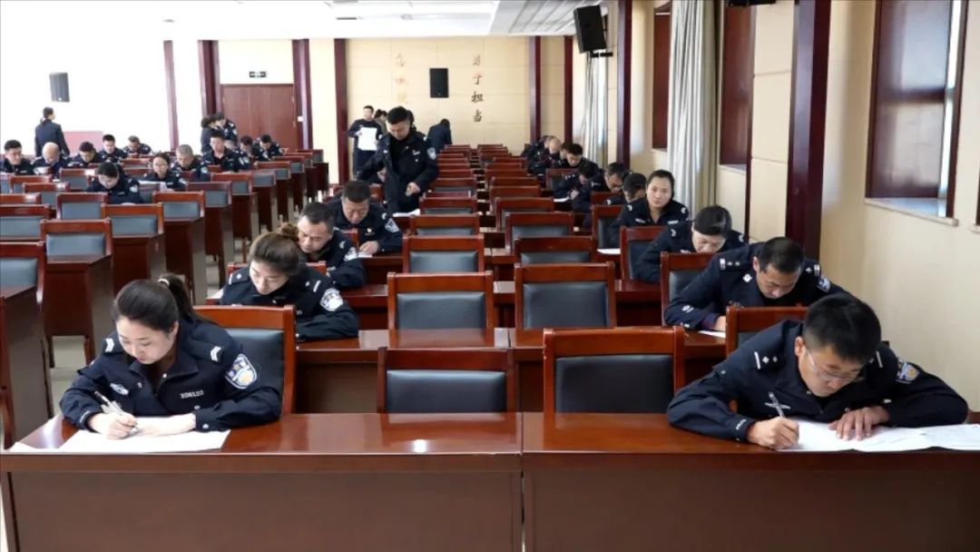 测试按照公开、公平、公正的原则采取闭卷方式进行,考试题型包括单项选择题、多项选择题、判断题和案例分析题,内容涉及政治理论、法律法规、公安业务知识、警察纪律条令、案例分析等主要内容。测试中,监考人员认真负责,严肃执纪。全体参考人员严格遵守考试纪律,独立思考,认真答题,整个考场秩序井然。