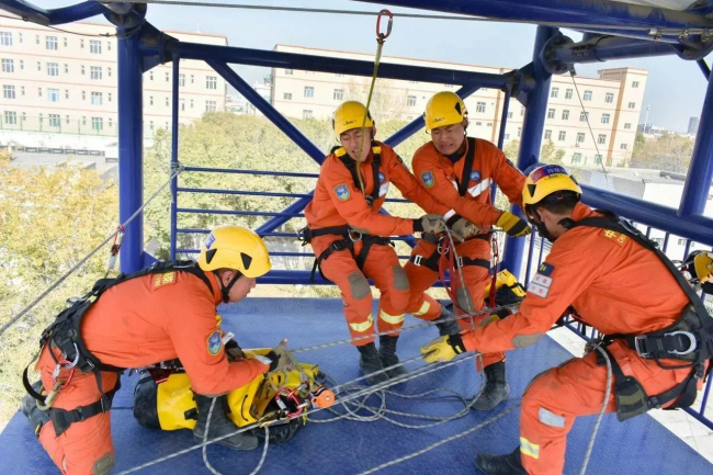 本网讯:(朱海峰 马志强)为切实加强队伍应急救援能力,使全体队员强化掌握绳索救援技术安全操作规程,进一步提高全体指战员绳索救援技术水平,确保在关键时刻用好“救命绳”。近日,新疆森林消防总队特勤大队扎实开展悬崖向上救援训练。