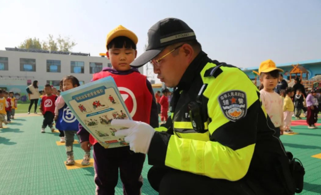 活动中,民警结合幼儿园小朋友年龄和心理特点,从交通安全标志、出行安全、交通事故预防等方面,用生动有趣的宣教方式,向孩子们深入浅出地讲解闯红灯、逆向行驶,以及乘坐机动车不系安全带的危害等,积极引导幼儿自觉遵守交通法规,远离交通危险行为。民警们用通俗易懂的语言与孩子们展开问答、互动,让孩子们在欢乐的氛围中对斑马线、交通信号灯、交通指示标志标线,以及如何安全过马路进行了学习,进一步提升了孩子们的安全出行意识,将本次活动推向了高潮。