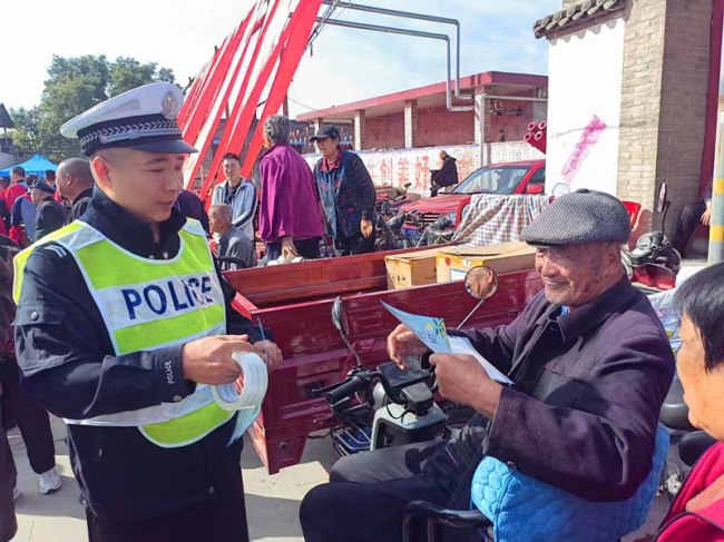 活动中,民警根据农村群众日常出行特点以及看戏的多为老年人的实际情况,用通俗易懂的语言,亲切与现场群众拉家常,宣讲酒后驾车、三轮车违法载人、骑乘摩托车与电动车不戴安全头盔等易发多发交通违法行为给自己和家人带来的严重后果,引导大家自觉遵守交通安全法律法规,切实提高安全出行意识。同时,民警向观看演出的农村群众发放了交通安全宣传资料,并叮嘱大家一定要自觉遵守交通安全法律法规,牢固树立自我安全防护意识,自觉养成遵法守规、文明出行的良好习惯。