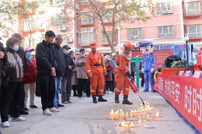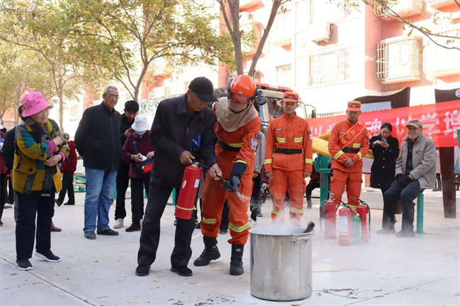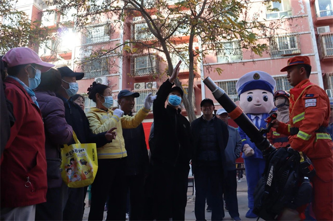 此外,指战员通过模拟火情处置向居民演示了如何正确使用干粉灭火器和消防栓等灭火设备,以及如何在火灾中正确逃生和自救互救,现场居民表现得跃跃欲试,并主动参与其中。期间,指战员们对火情处置过程中存在的问题和安全隐患进行了分析和纠正,让参与其中的居民切身了解了灭火器使用过程中的各个步骤和细节。在消防知识宣讲环节,指战员在现场以提问的方式与居民们进行互动,并通过观看宣传片让居民在轻松愉快的气氛中掌握了消防安全知识,营造了“人人关注消防,人人学习消防”的良好氛围。