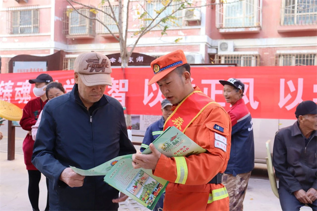 在活动现场,指战员通过防火常识讲解、装备展示、观看防火宣传视频、灭火器操作使用等多种形式,宣传森林防火有关常识和法律法规。同时,成立宣传小分队,积极开展“上门式”、“面对面”的消防安全教育,向居民发放森林防火宣传单耐心地讲解森林防火的要点、法律法规和注意事项。同时还嘱咐大家一定要在日常生活中注意防火,积极配合森林防火工作,确保人民生命财产安全和生活安全,有效提高了消防宣传覆盖范围。
