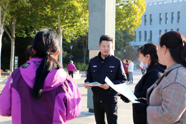 11月7日一大早,反诈中心民警就来到辖区大槐树文化中心广场开展反诈宣传活动,向晨练的群众发放宣传材料,并结合近期典型案例介绍了电信网络诈骗案件中常见的作案手段,普及防范技巧,对群众提出的问题,耐心地进行解答。此次活动共计发放诈骗相关宣传资料200余份。