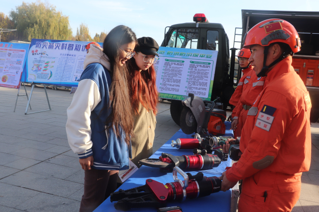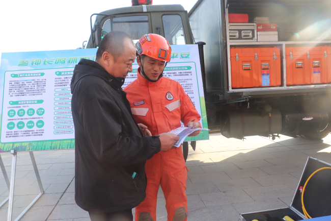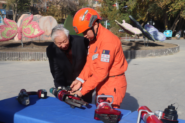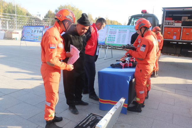 宣传行动中,各类新奇的地震救援装备引得来往群众纷纷驻足观看询问,“这是千斤顶吗?怎么和我们平时用的一点儿都不像?”“这是地震救援行动中专用的液压千斤顶,通过手动液压泵给不同尺寸的顶撑装置加压,打开救援通道……”宣传员积极主动向来往群众讲解地震救援装备性能,形象生动的描述让来往群众仿佛置身于救援现场,在指战员的热情邀请下部分群众亲自上手操作地震救援装备,在增涨地震救灾知识的同时,对消防员的救援行动有了更近距离的了解。
