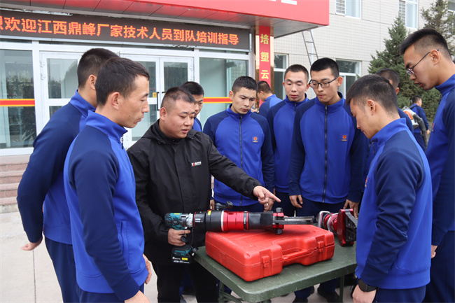 “朱工,这个钢筋速断器的续航时间是多少?”大队装备维修骨干二级消防士唐卫国问道。“钢筋速断器动力部分主要由马达、电池组成,充满电可以对直径4-22mm的钢筋、钢管、电缆等进行60次切割……”厂家技术人员朱琪回答道。厂家技术人员对“电动剪切器、电动顶撑器、钢筋速断器”等新特装备进行逐一讲解。对装备的性能、参数、操作方法,日常保养、常见故障进行讲解示范。大队装备技术骨干热情高涨,对重难点问题向厂家技术人员进行请教学习,厂家专业技术人员手把手教,确保人人学懂弄通。