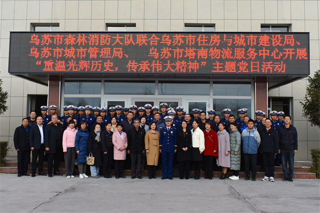 本网讯:(马强)为进一步深化主题教育走深走实,切实增强主题教育学习的针对性、时效性和感染力。近日,乌苏市住房与城市建设局、城市管理局、塔南物流服务中心党员干部走进乌苏市森林消防大队联合开展“重温光辉历史,传承伟大精神”主题党日活动。