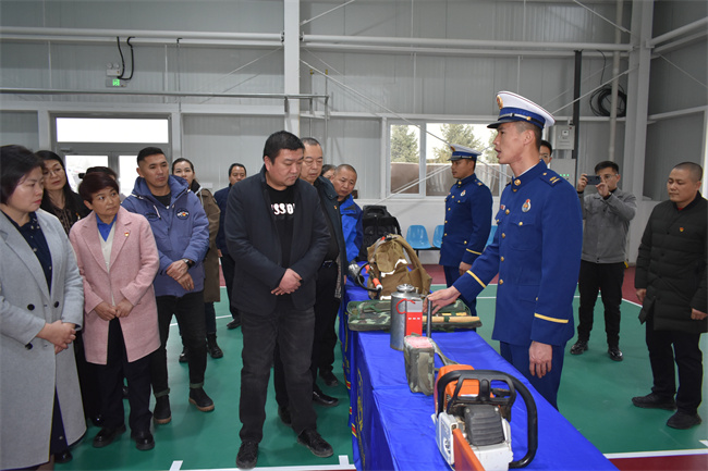 地方单位党员干部走进大队零距离接触森林消防队伍。首先,大队宣讲员带领大家逐一参观体验了森林消防灭火、地震、绳索等应急救援主战装备,观摩了快反分队绳索救援技术。大队宣讲员详细讲解了各类救援装备的性能和作用,全方位展示了队伍转制以来的建设成果,使参与人员充分了解了森林消防队伍的职能使命和救援实力。乌苏市城市管理局办公室主任薛志孝在参观时说道:“森林消防队伍转制以后,发展变化很大,人才装备建设日新月异,一旦有灾害发生,绝对是一支可以信赖的国家救援力量”。