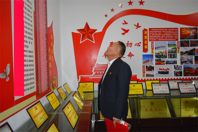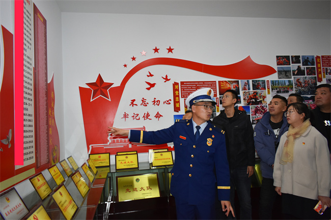 随后,全体党员参观了大队荣誉室,看着荣誉墙上面挂满的奖牌,大家无不对满墙的荣誉充满了敬佩!满墙的荣誉,一张张照片,见证了乌苏市森林消防大队全体消防救援人员团结一致、砥砺奋进、勇争荣誉的辉煌历史。