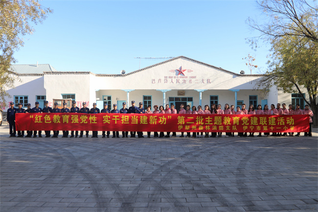 本网讯:(刘海 孟杰)为进一步深入推进学习贯彻习近平新时代中国特色社会主义思想主题教育强化党员党性内涵,立足岗位担当作为。近日,新疆总队伊犁支队联合伊宁市第十一小学全体教师前往伊宁市巴彦岱王蒙书屋开展“红色教育强党性、实干担当建新功”第二批主题教育党建联建活动。